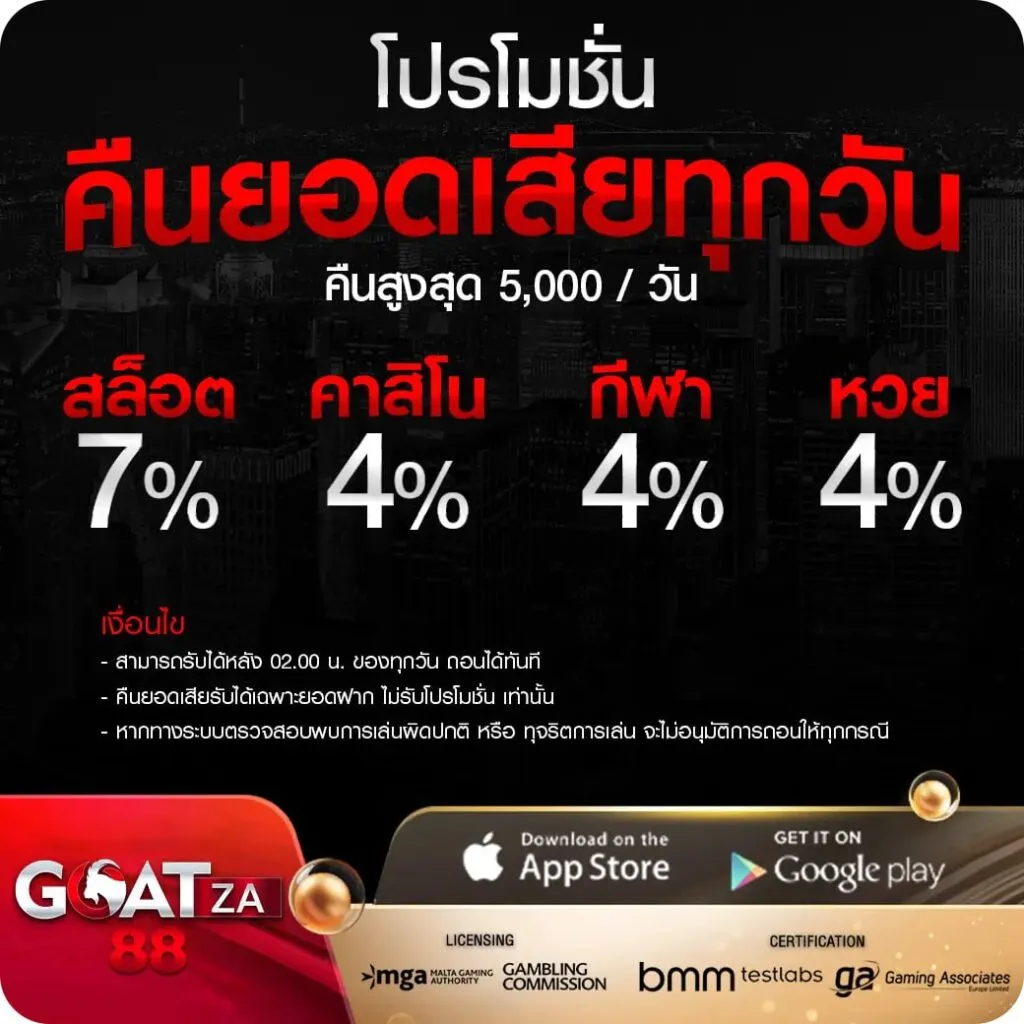 GOATBET และ GOATZA88 เว็บตรงไม่ผ่านเอเย่นต์ มีโปรทุกวัน เว็บทันสมัยเหมือนเล่นเว็บต่างประเทศ ปลอดภัย ไม่โกง มั่นใจได้ทุกการเดิมพัน